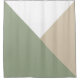 This trendy modern design features large triangular colour blocks in sage green, beige and white.