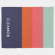 A modern geometric colour block striped design in a bold colour palette of teal, red, dark pink, and navy blue, personalized with your name.
