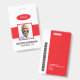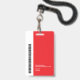 A modern and simple badge that does not distract from the important details. Easy to read from afar. Add a custom logo and company details. Add the employee's name, photo, and professional title. The bar of colour can be modified to match the company's official colours. At the back, add more information such as return address and the employee's ID number. Perfect for oval shaped logos.