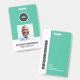 A modern and simple badge that does not distract from the important details. Easy to read from afar. Add a custom logo and company details. Add the employee's name, photo, and professional title. The bar of colour can be modified to match the company's official colours. At the back, add more information such as return address and the employee's ID number. Perfect for round shaped logos.