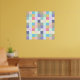 This is a trendy and stylish design featuring multicolored squares arranged in a chequered pattern on a neutral grid background. The squares come in various colours like blue, green, pink, purple, yellow, grey, orange, and rainbow pastel shades, arranged to create a unique and joyful geometric chequerboard design.