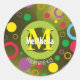 Modern Colourful Circles Monogram Customized GREEN Classic Round Sticker