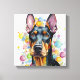 Introducing our stunning Modern Colourful Doberman Art Wrapped Canvas Print, the perfect addition to any dog lover's home decor. This vibrant and eye-catching piece captures the spirit and beauty of the Doberman Pinscher breed in a contemporary and artistic way.