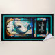 Monogrammed with Family Name, Yellow, Green, Blue, and Black Modern Beach Dolphin the ocean. Tropical Dolphin in Faux Stained Glass Design. If you're having an ocean, nautical, tropical, or luau-themed or pool party this design is perfect for the occasion.