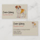 A business card with a modern colourful drawing of a cute dog. Perfect for a dog walker service or pet sitter.