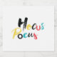 Modern, playful, colourful graphic design of a saying "Hocus Pocus" in red, yellow, blue and black colours. Creative, experimental, cheerful typography.
