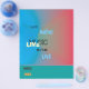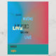 A trendy colourful Music event flyer in blue green aqua and orange. Text with different fonts and " Live Music "repeated. over the page
