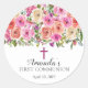 Modern Colourful Pink Floral First Communion Classic Round Sticker
