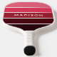 Modern Colourful Pinks Colorblock Personalized Name Pickleball Paddle features a simple, colourful and modern design in a colour block pattern of pink and plum shades with your personalized name in modern script typography. Perfect gift for Christmas, birthday, Mother's Day, best friends, sister and more. Designed by ©Evco Studio www.zazzle.com/store/evcostudio