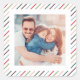 Square Christmas holiday photo sticker or envelope seal design features your favourite photo framed by festive seasonal colours. Colours include: merlot red, aqua blue, holiday red, olive green, rose gold, hunter green, and accents of dark grey. Tip: crop your photo to a square format before uploading it to the site.
