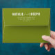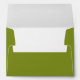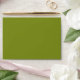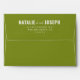 A retro modern hand written bright colourful wedding envelope. Which features bold bride and groom's names in cream colour on olivr green background. And personalized return address. Which suits the whole wedding suite.