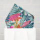 Bright and colourful, this modern tropical pattern has illustrated organic palms, flowers and foliage scattered across the design. Colours include aqua, teal, orange, gold, pink and white. This versatile design looks great as a liner for gift bags and packages for all occasions. It also makes a nice choice for wrapping handmade artisan craft items in your studio, shop or small business.