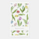 The product design features a pattern of colourful tulip flowers in purple, red, pink, blue, and yellow. This original botanical illustration with personalized text makes elegant modern and unique paper guest towels.