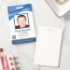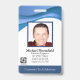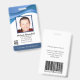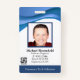 Personalized abstract ID badge with a cool modern wavy blue design above the software engineer or IT repair technician employee photo. Add your own photograph and custom information, including job title, department name, ID number, issue or expiration date and company or business name and logo. Can be customized with your personal security barcode on the back for access and clearance.