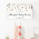 Modern baby shower banner featuring black, blush and copper-gold confetti dots and modern calligraphy script. Other colours and matching items are available.