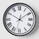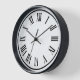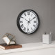This classic contemporary and modern roman numeral wall decor clock has roman numeral clock markings that match up with the black frame of the clock. Designed as an office wall clock, clock for the home or home office.