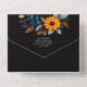 This wedding invitation combines elegant typography with a modern, floral design. It features a black background with vibrant orange, blue, and teal flowers framing the text, creating a striking contrast. The invitation includes all essential details for the event, from the ceremony's date, time, and location to an RSVP section and menu options. The art style blends a contemporary aesthetic with traditional elements, using script and serif fonts to convey a sense of sophistication and warmth. This all in one design makes sending out invitations and RSVP’s much simpler. Personalize the text with your information.