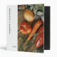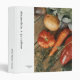 Modern family recipe binder features a simple design with stylish font and vegetable photo. Custom couple name and family name recipes presented on the front and spine in stylish simple font. A personalized congratulatory wedding message with love message in elegant script on the back. A simple family recipe binder makes for the perfect personalized wedding gift for the bride and groom.