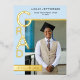 Designed to highlight your graduate’s photo and achievements, the layout balances minimalism with visual impact, making it an ideal choice for high school or college graduates. The cool blue hue offers a polished alternative to traditional neutrals, while the gold foil adds warmth and sophistication without overpowering the design.