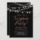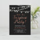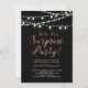 Celebrate a special day with this modern surprise party invitation! This design features a stylish script typography with a copperr texture and light strings. You can customize the background colour.