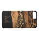 Girly modern animal print in brush strokes with copper, gold, glitter, black and adorned with your script monogram, first name and initial.