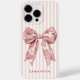 Modern Coquette Pink Stripes Girly Bow Custom Name Case-Mate iPhone Case