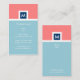 Stand out with this professional looking monogram business card. It has a beach colour scheme of coral pink, navy, white and sky blue. Perfect for networking or handing out to your clients. Personalize with your own information. To change the fonts or to add extra text just click the "Customize it" button.