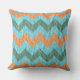 Modern Coral Aqua Chevron Leather Throw Pillow