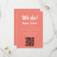 Modern Coral Pink QR Code & Photo Wedding Save the Date. Customize with your future wedding date, location and wedding website for guests on the front, and add one of your favourite couple photos and your future wedding date on the back of the card.