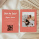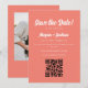Modern and elegant, this coral pink wedding save the date cards is customizable with QR code for your wedding website on the front, and a custom engagement photo on the back. Change the colours of this card by clicking on "personalize this template," then "edit using design tool." If you need help making any changes, please message the designer.