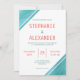 Modern and stylish coral and turquoise wedding invitation.