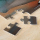 This is a really nice puzzle however it is what I would call fragile while putting together. The pieces fit but are very loose, you need to be constantly pushing them together and when you remove a wrong piece a lot of other pieces come with it. However, the pieces themselves are a good thickness and sturdy. It also has more than one cut to the pieces which make it challenging. I really enjoyed this puzzle and it is definitely a hard one for me. The picture on the puzzle is very good quality. It shows the book cover very well and the detail is great. The size I chose I found was perfect in detail for me. It shows very well.