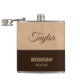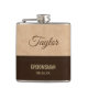 Our cool hip flask bottle is a great gift idea for your groomsman. You can just slip this little guy in the inside pocket of your tuxedo jacket and you'll be ready for a quick drink whenever and wherever you need him. The cream and brown imitation leather is more durable than real leather. The bottle will look like new for a long time. The contrasting font ensures that the personalized text looks sharp and sophisticated.