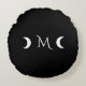 Modern Crescent Moons Black and White Monogram Round Pillow