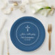 These paper plates feature a pop of colour and your custom text under a white cross. Use the template form to add your personalization.