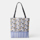 Show off your passion for cruising with this beautiful tote bag featuring a modern travel pattern with cruise ships, cocktails, cameras, hats, sunglasses, binoculars, sea blue stripes - and more! Easily change the text to make it personal or feel free to delete it. See the entire collection for awesome ideas for cruise lovers! © The Pattern Press.