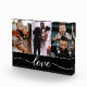 Personalize this photo block with 3 photos. Choose favourite photos of the family, the kids, parents, wife, husband, wedding photos, pets (dogs, cats, fish etc.). Black bar at the bottom with a modern "Love" Script type.