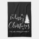 Modern Custom Black White Tree Merry Christmas Kitchen Towel