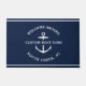Nautical boating doormat in navy blue reading "welcome aboard" as well as your custom boat name and location.