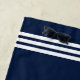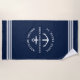 Nautical boating beach towel in navy blue reading "welcome aboard" as well as your custom boat name and location.