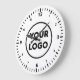 Replace the sample company logo with your own in the sidebar to create a modern wall clock for your business with a white background. Your logo can be in colour or black and white. Bold black numbers with minute marks around the edge make it easy to tell the time. Click to customize further if you need to adjust the size of your logo with the scale buttons.