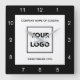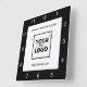 Create your own modern square wall clock for your business featuring your logo and text on a white background with a black border with simple white numbers around the edge. Replace the sample company logo and text with your own in the sidebar. Your logo can be a circle, square, or another shape, and in color or black and white. Click to customize further if you need to adjust the size of your logo with the scale buttons.