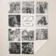 A beautiful, modern gift for anyone in your family: A trendy Instagram photo collage sherpa blanket in black and white with your personal family name and year established for that special keepsake packed with years of memories. The background colour is customizable under "customize further".
