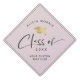Modern custom name graduation notebook with trendy script calligraphy reading CLASS of under a printed gold grad cap. Personalize with your name in an arch and the year of your graduation. This is the blush pink version.