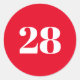 Modern Custom number, date, red white Classic Round Sticker