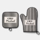 Modern Custom Personalized Chef Black Striped Oven Mitt & Pot Holder Set