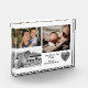 Modern Simple Elegant Trendy Custom Photo Collage Fathers Day Daddy Acrylic Photo Block. He's an awesome dad! Personalized one-of-a-kind unique create your own custom 3 photo collage keepsake photo block, featuring a small heart detail in a fingerprint design. Easily add your own text and personal pictures. This memorable customized keepsake captures the love between father and child or children. Modern handlettering typography notes "Happy Father's Day Daddy Love you" and child's or children's names. Option to change the name from Daddy to Dad whatever name you choose, or uncle or grandpa or granddad. Your photos can be colour or black and white. Text colour can be changed, too. Perfect gift idea for Father's Day or just because. Personalized thoughtful gifts for dad from son or daughter for the father who wants nothing. Elegant addition to his desk. He'll treasure it always! Step by Step Inspiration Series available exclusively on Zazzle at zazzle.com/store/KrisHarty, designed by international designer, Kris Harty. © 2020 Kris Harty Step By Step Inspiration