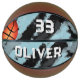 Modern Custom Player Name & Number Keepsake Basketball. Watercolor background texture in blue and black colours. Personalize it with your player number and name. The design has a basketball drawing. A great personalized basketball keepsake to remember the favourite sport.