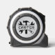 Custom monogrammed tape measure design features a sleek and modern silver design with a black wrench and hammer tools framing the industrial style personalized first name text. Makes a great gift for your favourite handy man!