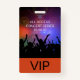Concerts and large events all access VIP pass badge template to customize featuring a background of crowd of concert goers and coloured lights with white text overlay. Customize for VIPs, staff, press or other uses, Add other event information to the reverse side of the badge in white lettering on black.